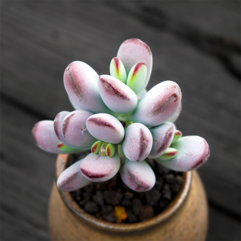 Stunning when in bloom. it’s dramatic coloring adds the best contrast. Unique and easy to care. give the plant partial sun and water only once a week. It’s a perfect succulent for busy people and an excellent addition to your garden.
