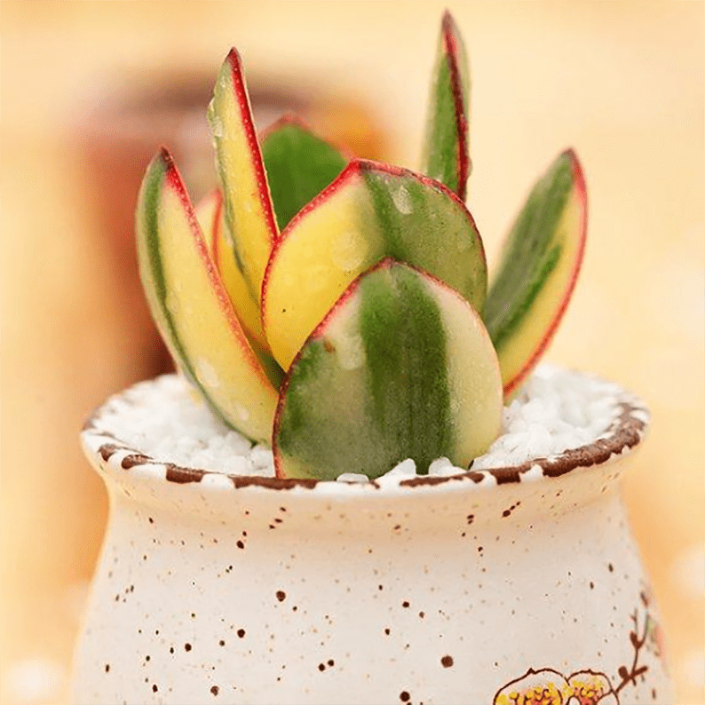 A great choice for beginners. the Crassula obliqua Tricolor Jadeis an indoor plant. perfect in pots. and pruning will keep the succulent in a bonsai size.