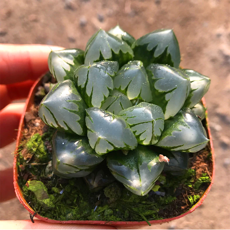 Including: 1 live succulent plant (Haworthia Obtusa Wick).