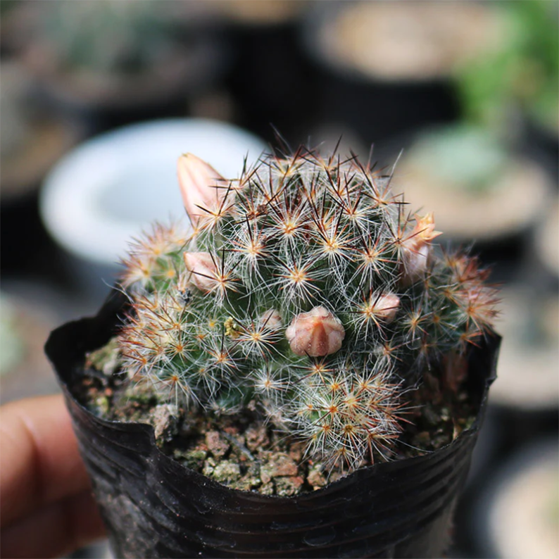 6) Mammillaria only blooms when it is exposed to sufficient direct sunlight. optimum sunlight exposure is at least 5-6 hours. Avoid direct afternoon sun exposure.
